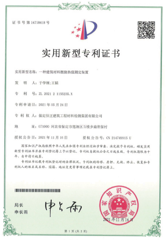 專利 一種建筑材料燃燒熱值測定裝置
