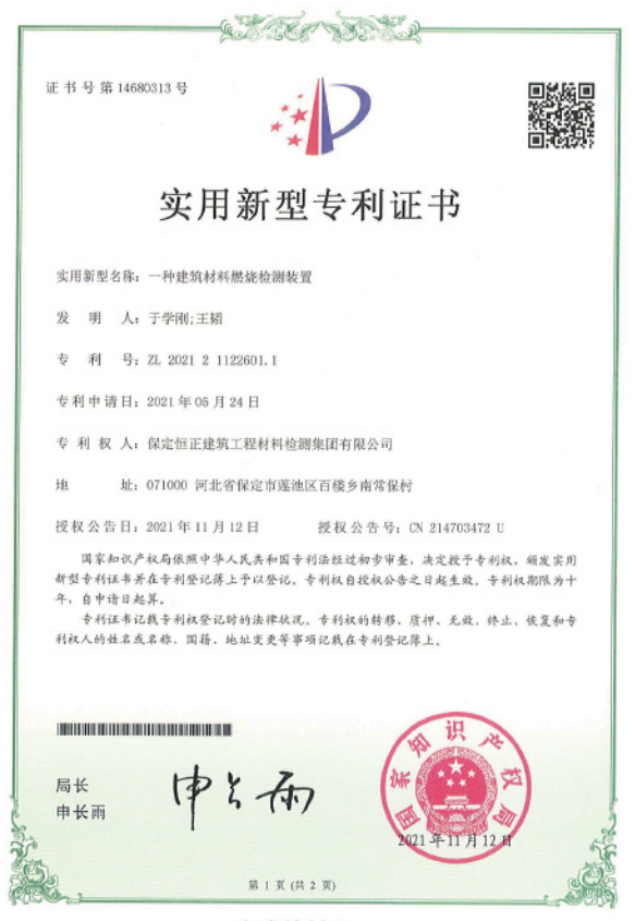 專利 一種建筑材料燃燒值測定裝置