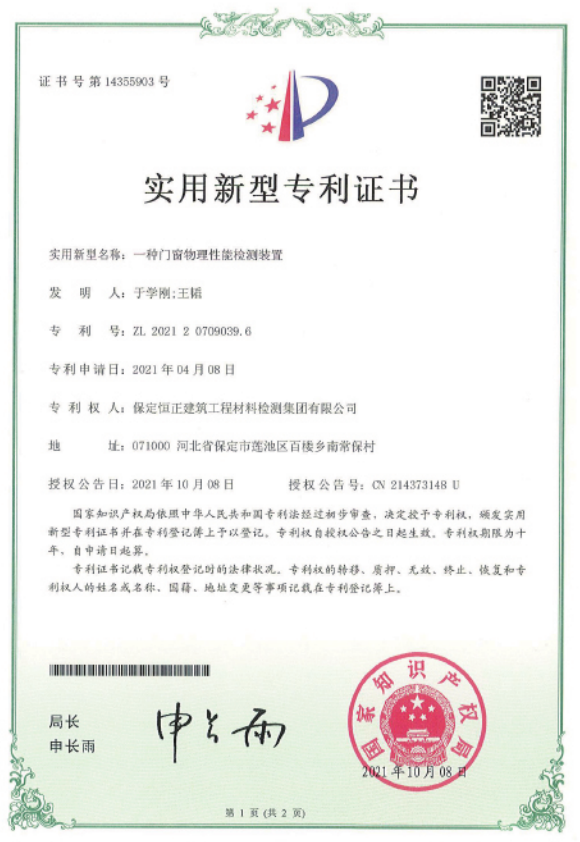 專利 一種門窗物理性能檢測裝置