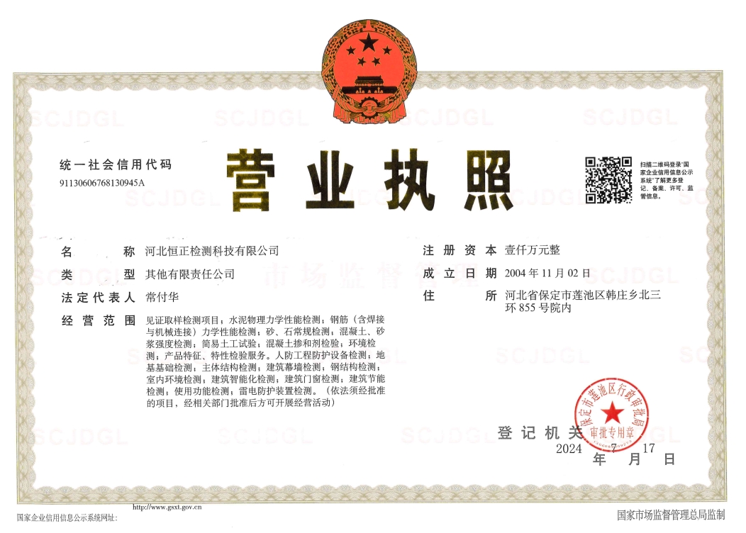 建設(shè)工程質(zhì)量檢測機構(gòu)資質(zhì)證書