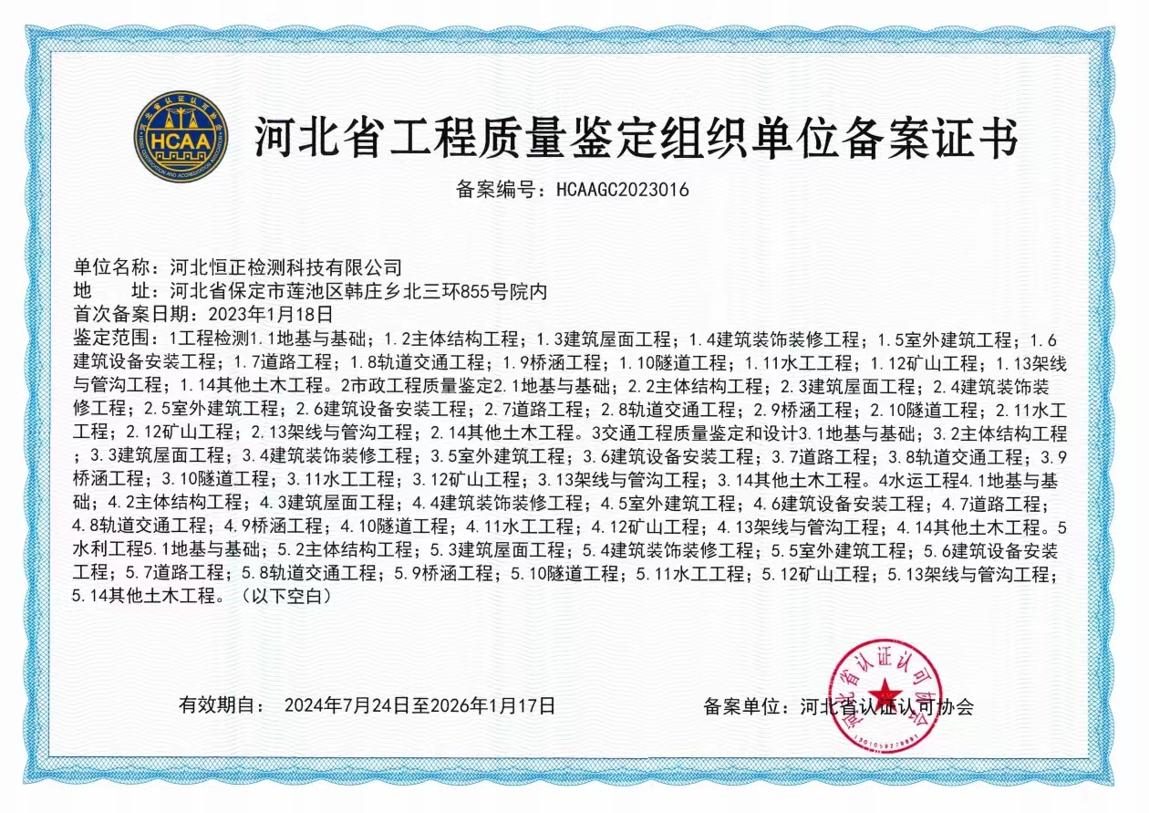 工程質(zhì)量鑒定備案證書
