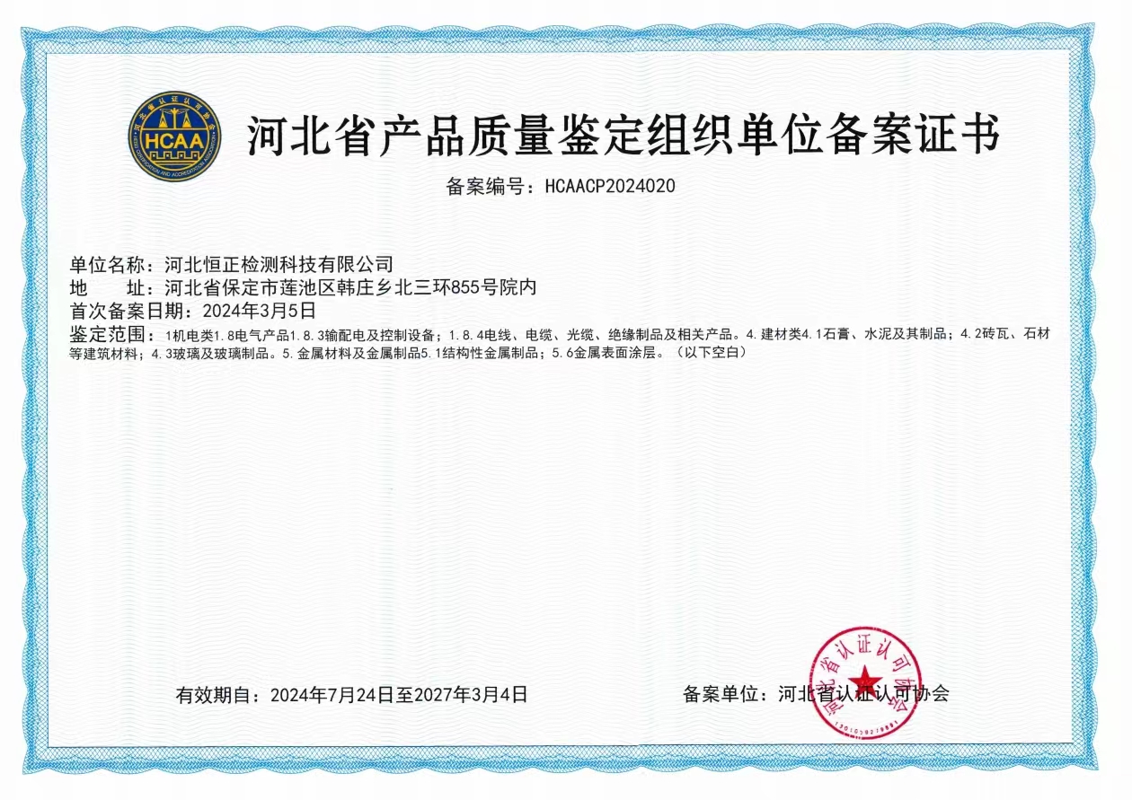 產(chǎn)品質(zhì)量鑒定備案證書