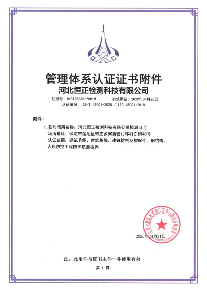 管理體系認證證書附件